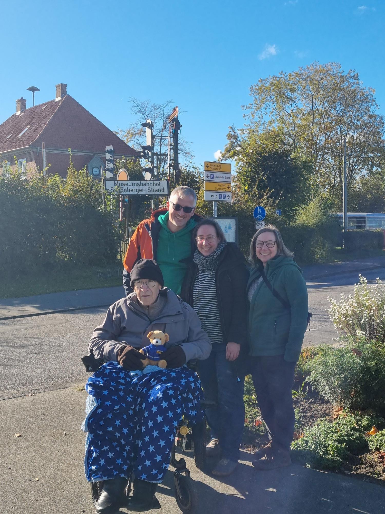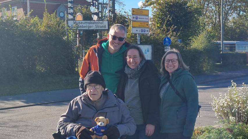 Herr Neitzel konnte mit seinem motorisierten Rollstuhl, den seine Familie für ihn mitgenommen