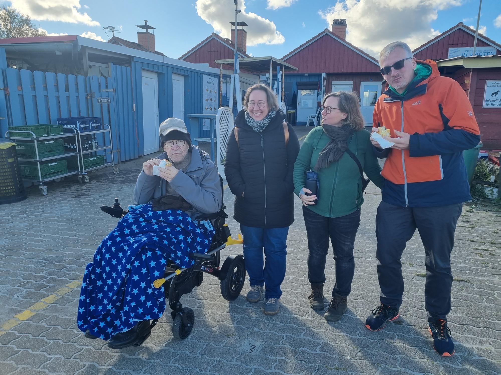 hatte, auf dem Deich fahrend die gute Luft und die schöne Aussicht genießen. Das Fischbrötchen,