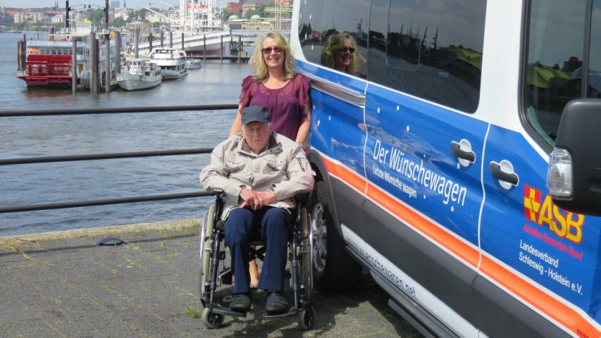 Wir wissen nicht genau, ob Egon B. ein Musik- oder ein Architekturliebhaber ist, aber er hat mehrfach den Wunsch geäußert, zusammen mit seiner Tochter Petra die Elbphilharmonie in Hamburg zu besuchen. Der 91-jährige ist schwer krank und kann nur wenige Schritte mit dem Rollator gehen. Im Rollstuhl ist er aber mobil und hat sich deshalb die Fahrt mit dem ASB-Wünschewagen zugetraut, genauso, wie es im unserem Motto heißt: „Letzte Wünsche wagen!“