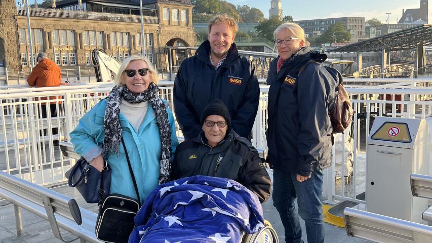 Früh morgens starteten wir im ASB-Hospiz St. Klemens in Itzehoe und – fast pünktlich – zum Sonnenaufgang erreichten wir die St. Pauli-Landungsbrücken, um auf dem Halunder Jet zu boarden. Eine tolle Fahrt über die Elbe mit Zwischenstopp in Cuxhaven konnte Herr H. mit seiner Schwester genießen. Etwas stürmisch verlief die Fahrt dann von Cuxhaven nach Helgoland. Aber auch diese ca. 75-minütige Strecke haben wir gemeinsam sehr gut gemeistert.